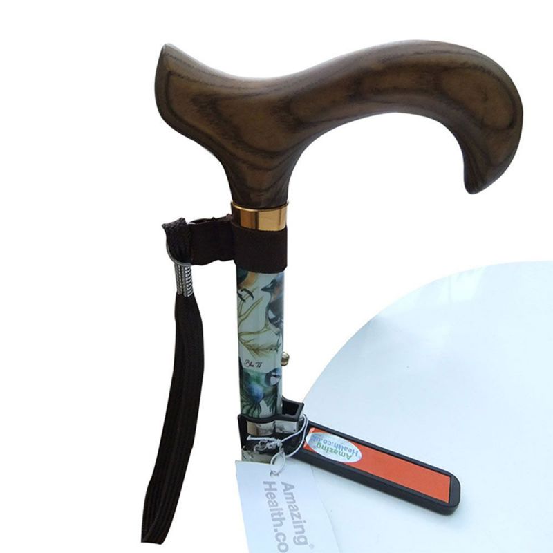 Folding walking stick garden birds design comes with a black carry case